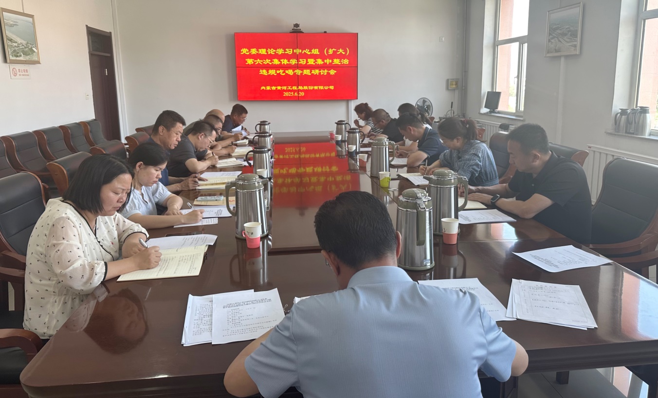 2025年6月20日,内蒙古黄河工程局股份有限公司召开党委理论学习中心组(扩大)第六次集体学习暨集中整治违规吃喝专题学习研讨会,公司党委书记、董事长张胜利主持会议并讲话。